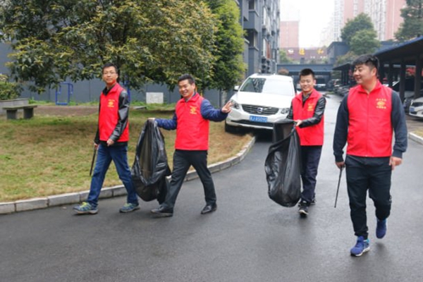 他們或在小區各處清理道路、綠化帶上的垃圾雜物,或將隨意放置的共享單車清理出來送回集中停放點,或彎腰低頭認真拔去青青草坪里冒出的雜草。為了小區環境的整潔和美觀,大家齊心協力都認真工作著,他們的熱情,也感染了周圍的人們。小區里路過的居民笑容滿面地打招呼:“學習雷鋒啊,真是好事情,把我們的小區變得更干凈更漂亮啦,這樣的活動正應該多搞搞啊!”